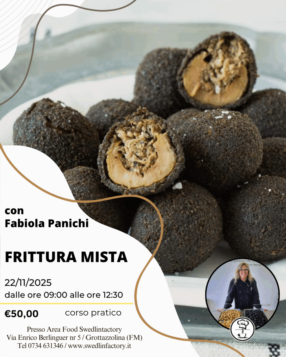 Il 22 novembre vivi un’esperienza unica con il nostro corso pratico di frittura mista; dalle olive all’ascolana a quelle al tartufo, alle mozzarelle in carrozza, imparerai i trucchi di una vera ascolana DOC.